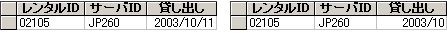 設問 2. <図1>はテーブルのデータシート ビューの一部で、「貸し出し」フィールドは日付/時刻型のフィールドである。「貸し出し」フィールドの[書式]プロパティの値をと設定し、データシート ビューで再度表示した場合、 <図2>のように表示される。