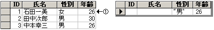 設問 3. <図1>はテーブルのデータシート ビューの一部である。<図2>の通りフォーム フィルタを設定し、フィルタを実行した場合、<図1>の@のレコードは抽出される。