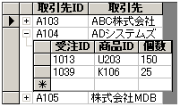 設問 4. <図3>はテーブルのデータシート ビューの一部である。図の展開したサブデータシートにおいて、「受注ID」フィールドの値が「1013」のレコードの「個数」フィールドの値を「100」に変更することができる。