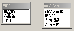 設問 2. <図1>はリレーションシップ ウィンドウの一部である。<図1>の「商品」テーブルの「商品ID」フィールドを「商品入荷」テーブルの「商品ID」フィールドにドラッグすることにより、「商品」テーブルの「商品ID」フィールドと「商品入荷」テーブルの「商品ID」フィールドにリレーションシップを設定することができる。
