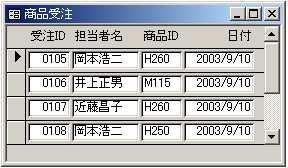 設問 2. 下図は表形式のフォームをフォーム ビューで表示したものである。このフォームの[レコードセレクタ]プロパティの値は「いいえ」に設定されている。