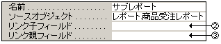 設問 5. <図2>は<図3>のリレーションシップが設定された2つのテーブルを基に作成したメインレポートとサブレポートから構成されるレポートの一部である。 <図4>は<図2>のレポートのサブレポートのプロパティ シートの一部である。<図4>のが設定されている。