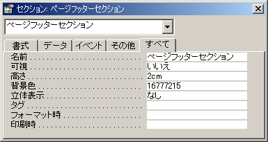 設問 1. 下図はレポートのページ フッターのプロパティ シートである。このレポートを印刷プレビューで表示した場合、ページ フッターは表示される。