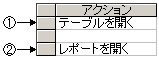 {ア. 表示させるレポート名 イ. レポートを表示させるマクロ }