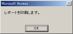 設問 4. [アクション]列に「メッセージボックス」を設定し、引数に「レポートを印刷します。」と設定したマクロを実行すると、<図2>のメッセージ ボックスが表示される。