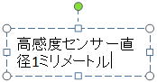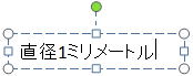 設問 2. <図4>のテキストボックスにおいて、カーソルが@の位置にあるとき、メモ帳からコピーした文字列「直径1ミリメートル」を[貼り付け]コマンドを使用して貼り付けると、 のようになる。