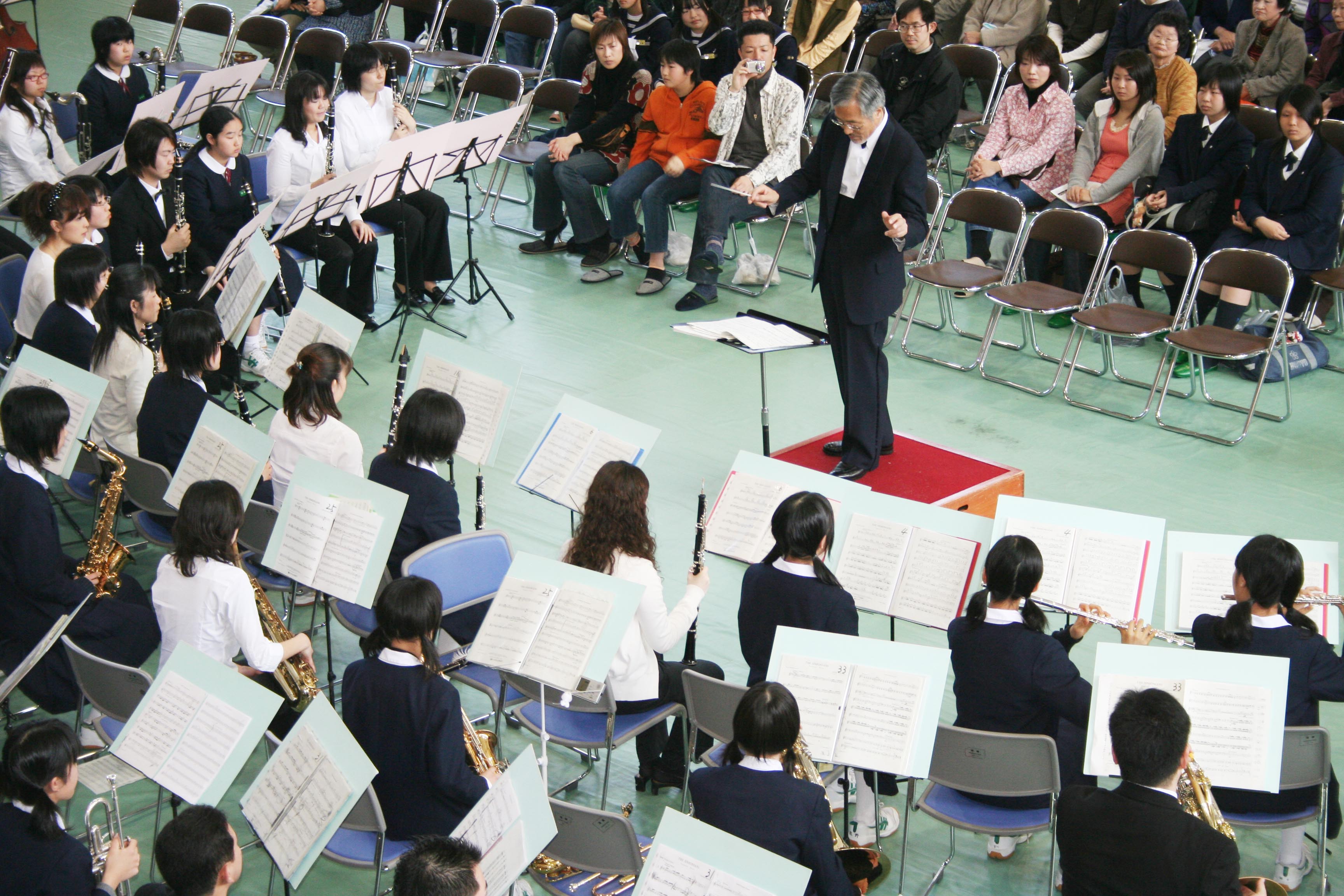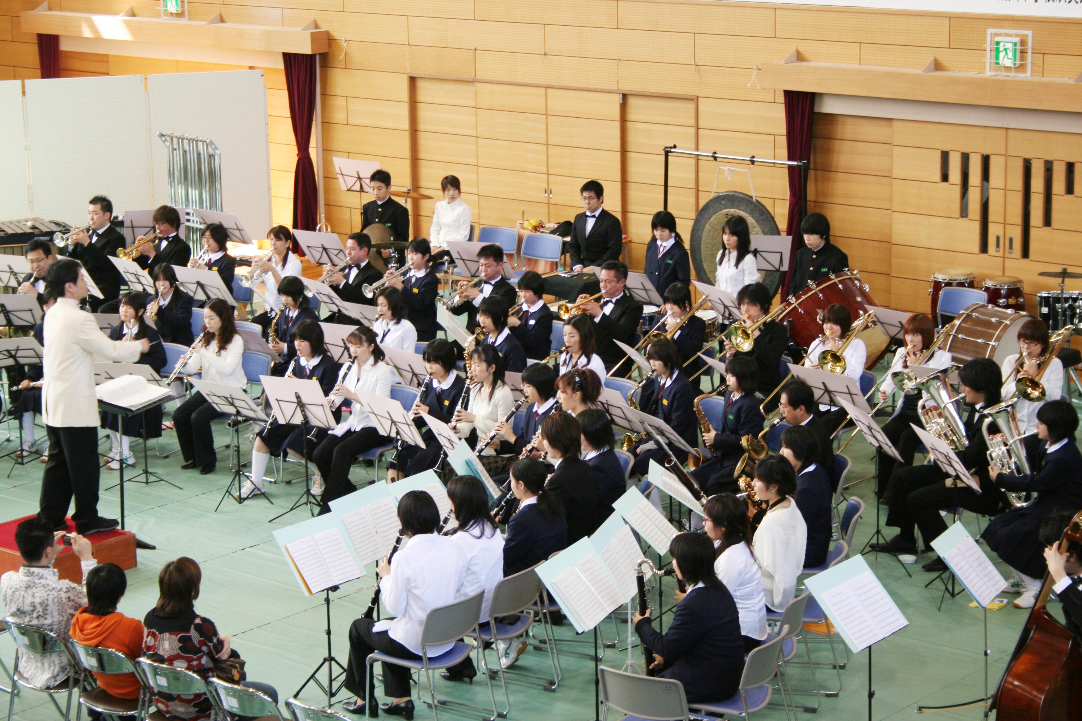 10時40分からは、体育館にて記念演奏会が催されました。 本校吹奏楽部と速星Friday’s、それに元NHK交響楽団所属の秋山鴻市氏が客演されて、たいへんな盛り上がり振りでした。 今回の校舎改築を機会に吹奏楽部の楽器も新しくなり、すばらしい演奏が生で聞けました。