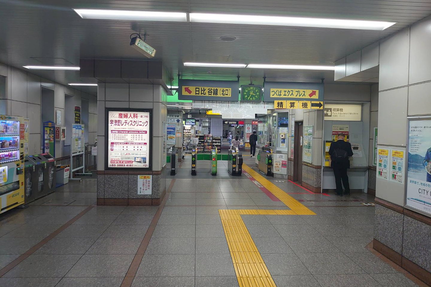 1階地上部(JR常磐線の高架下で、駅舎の反対側)にコンコースがあり、ホームは地下2階にある。