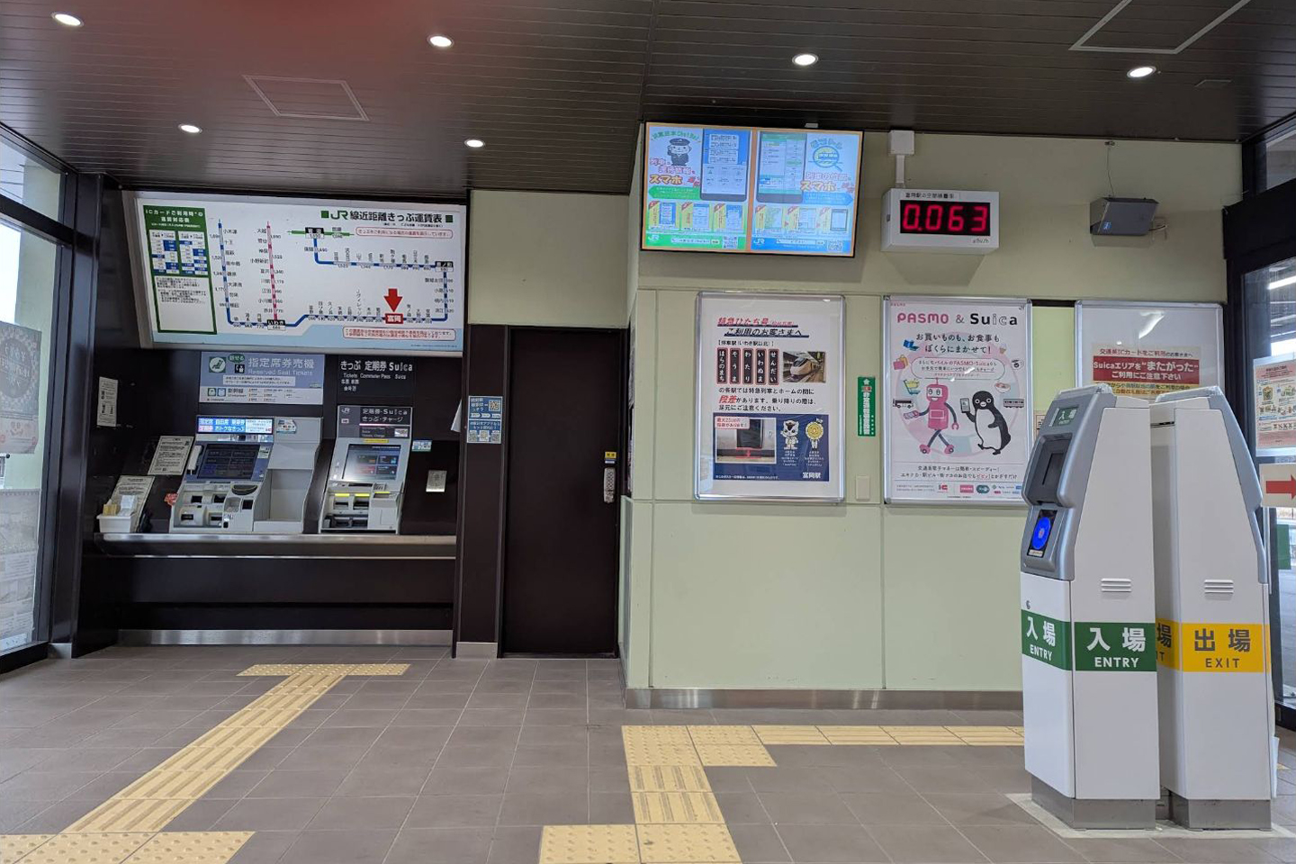 駅舎内には、自動券売機(Suica対応)、話せる指定席券売機、簡易Suica改札機、乗車駅証明証発行機、運行情報を伝えるディスプレイが設置されている。