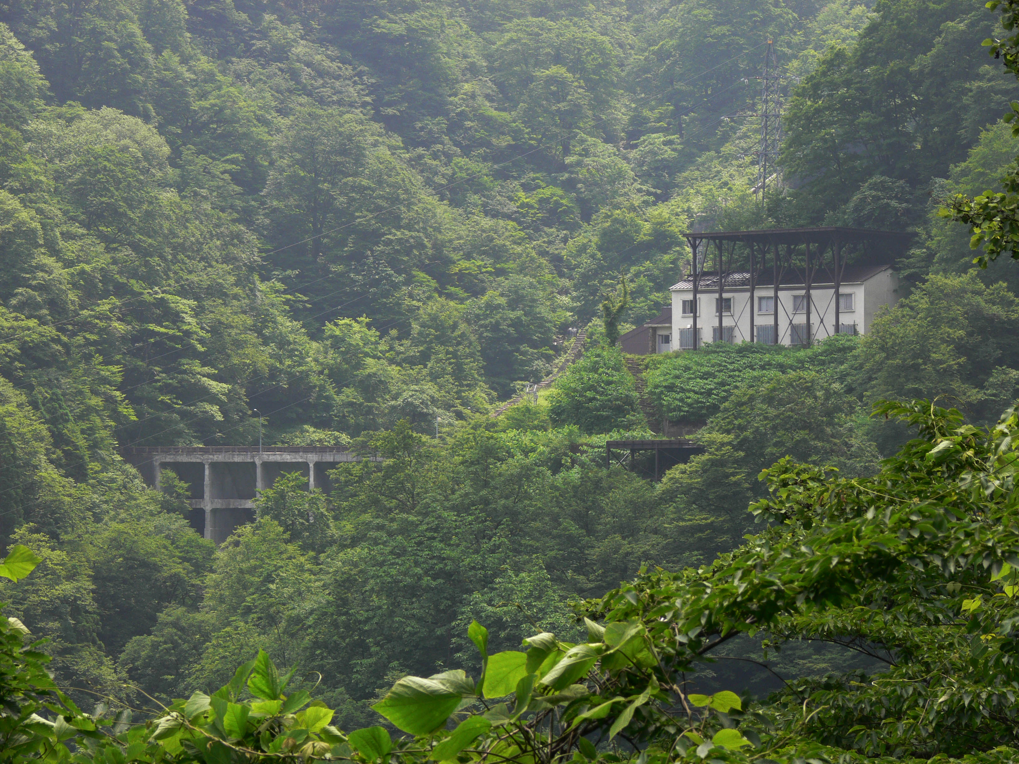 しかし不思議なことに道路の途中から軌道があるのですが、ではそこまでは物資をどうやって運んでいるのでしょうか。たぶんあの狭い道を軽トラックで運んでいるのでしょう。それなら発電所とダムがある地点まで軽トラックで運べばよいと思うのですが、そこはトラックで運ぶには狭い上に崩れやすいので、このように軌道を利用しているのだと思われます。