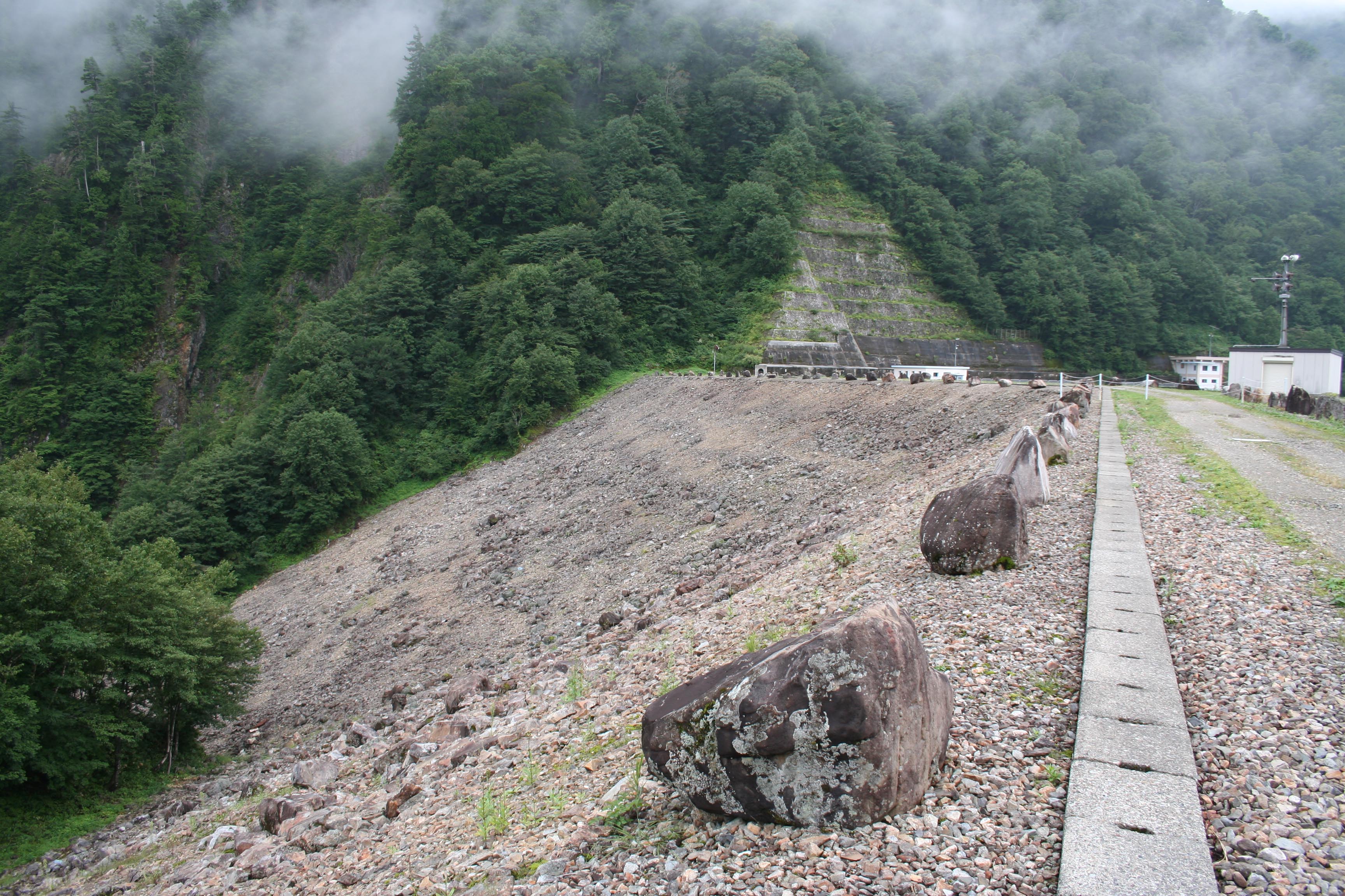 このダムはロックフィルダムですが、ちょっと変わった形をしていて途中で屈曲しています。
