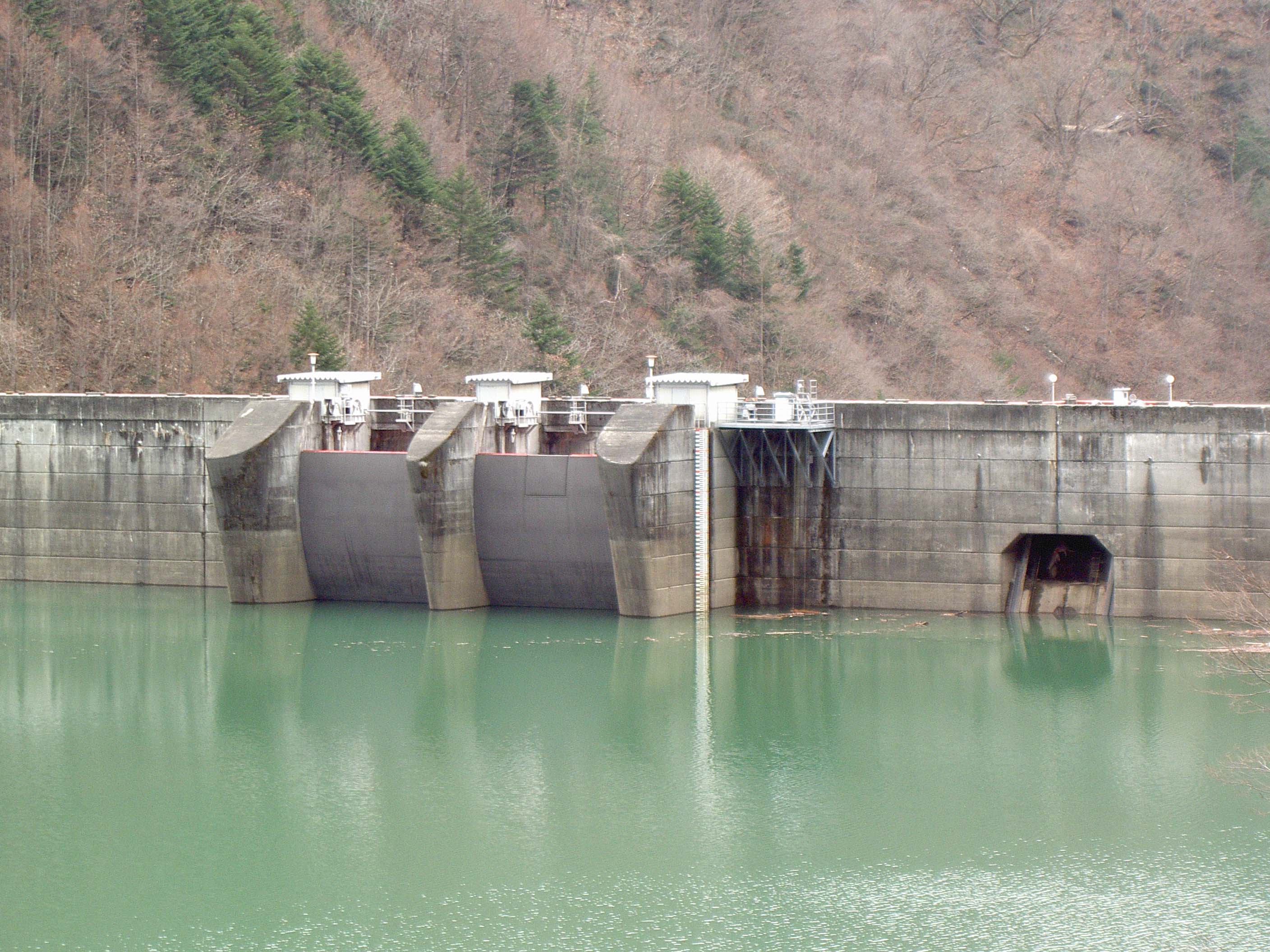 このダムは、全国的にも珍しい中空重力式コンクリートダムです。