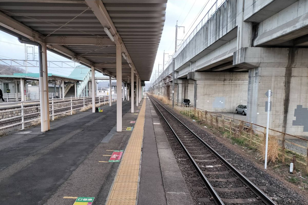 以前は島式ホーム2面4線であったが、上り線島式ホーム外側の線路と下り線島式ホーム内側の中線は撤去されている。