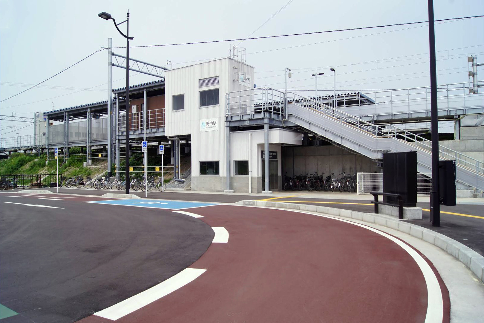 上下ホームに待合室と地上部と連絡するエレベーターがあり、下りホーム(2番線)の待合室内にはタッチパネル式自動券売機が設置されている。
