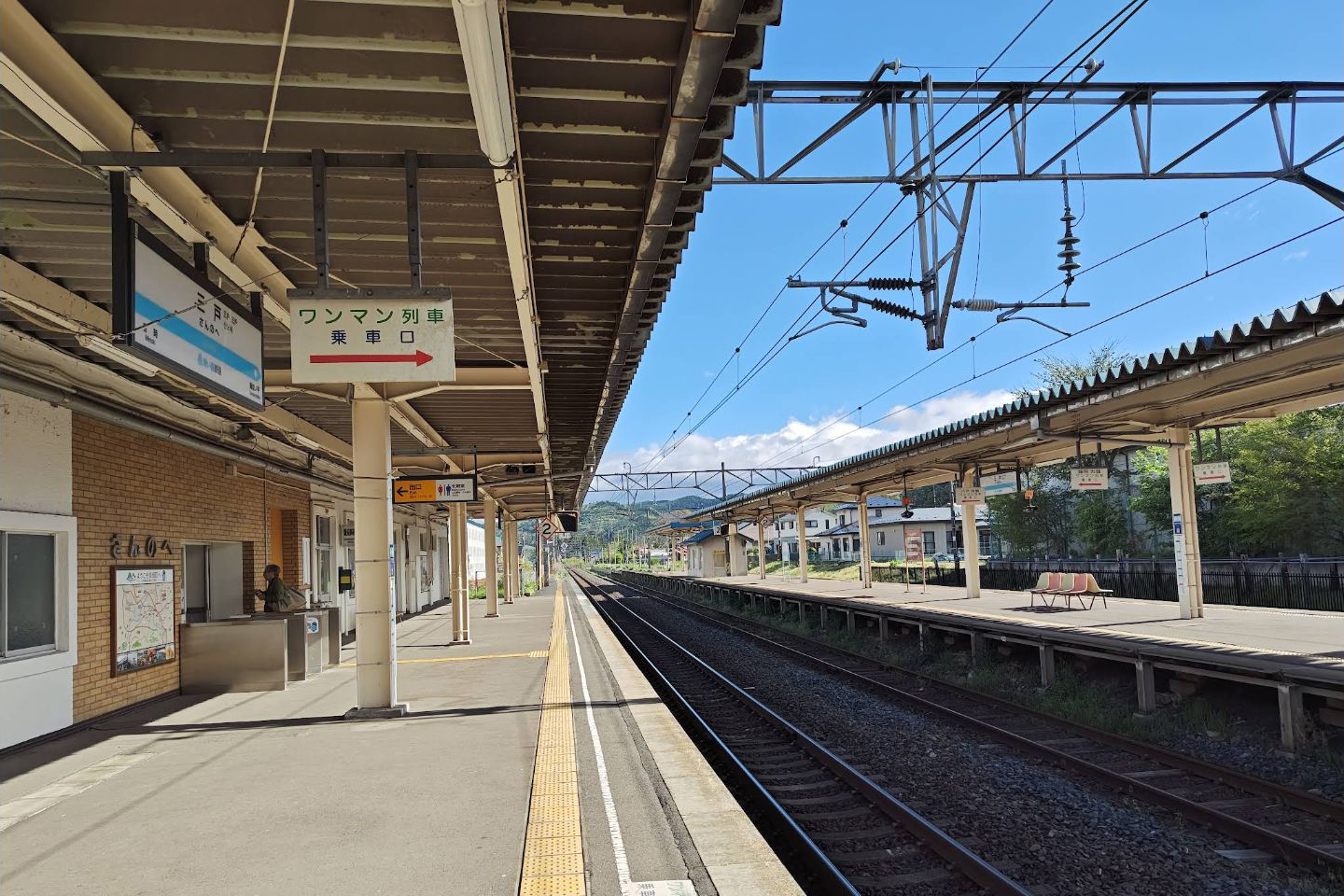 所在地は南部町であるが、駅を下車してから南側にある馬淵川を越えると三戸町に入る。