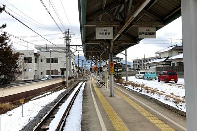 別所線では全線でワンマン運転を実施しているため当駅では通常は進行方向1番前のドアしか開閉しないが、朝6時30分から8時30分の間の上田行きの電車は土日祝日年末年始を除きすべてのドアが開閉します。