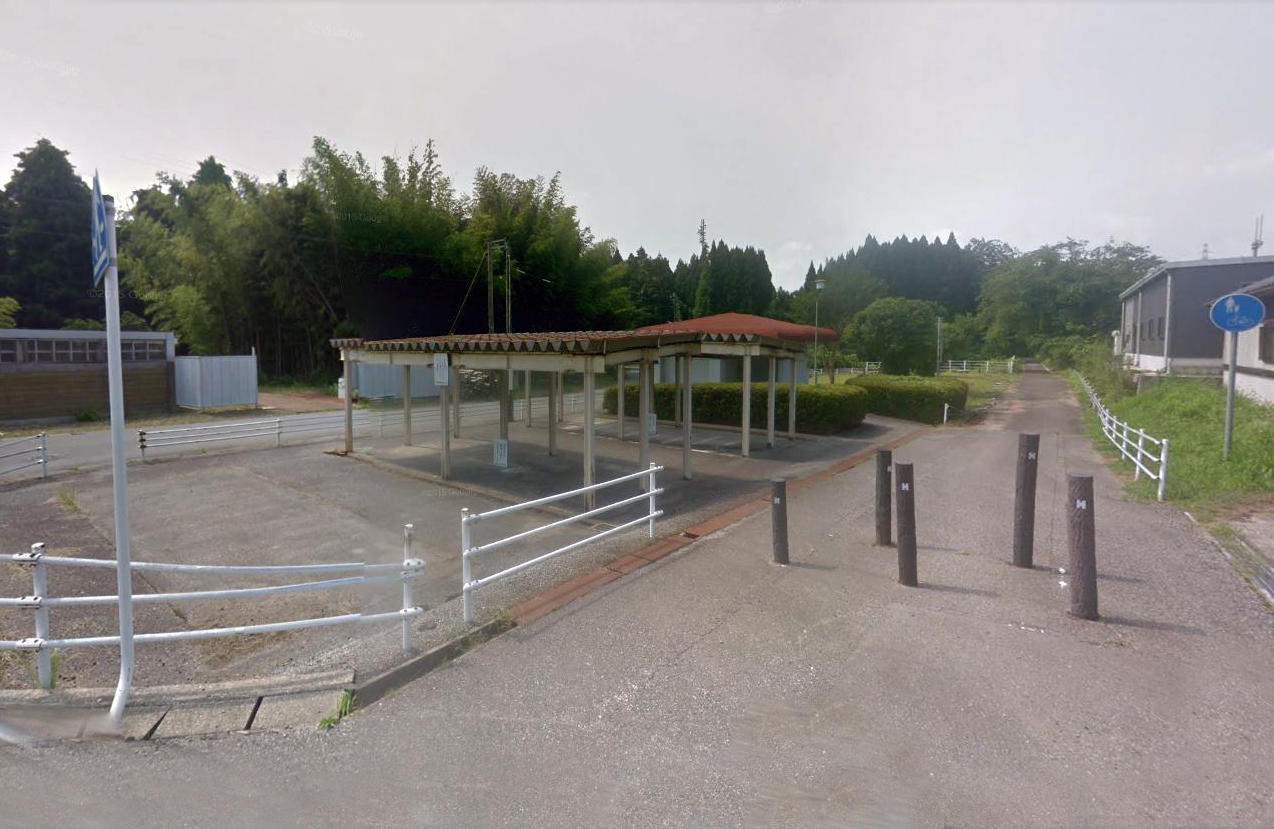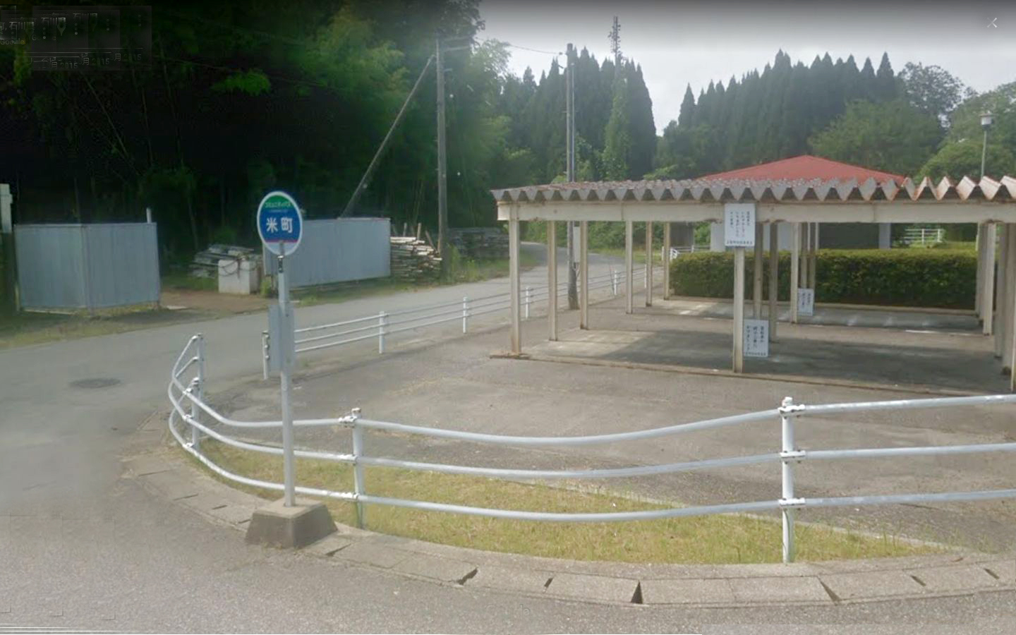 現在ではサイクリングロードの休憩所となっていますが、駅跡には米町バス停が設置されています。 |