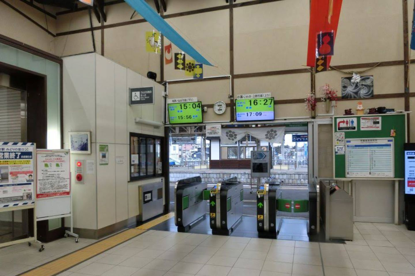 ただし、お客さまサポートコールシステムが導入されており、一部の日中時間帯は遠隔対応のため改札係員は不在となる。