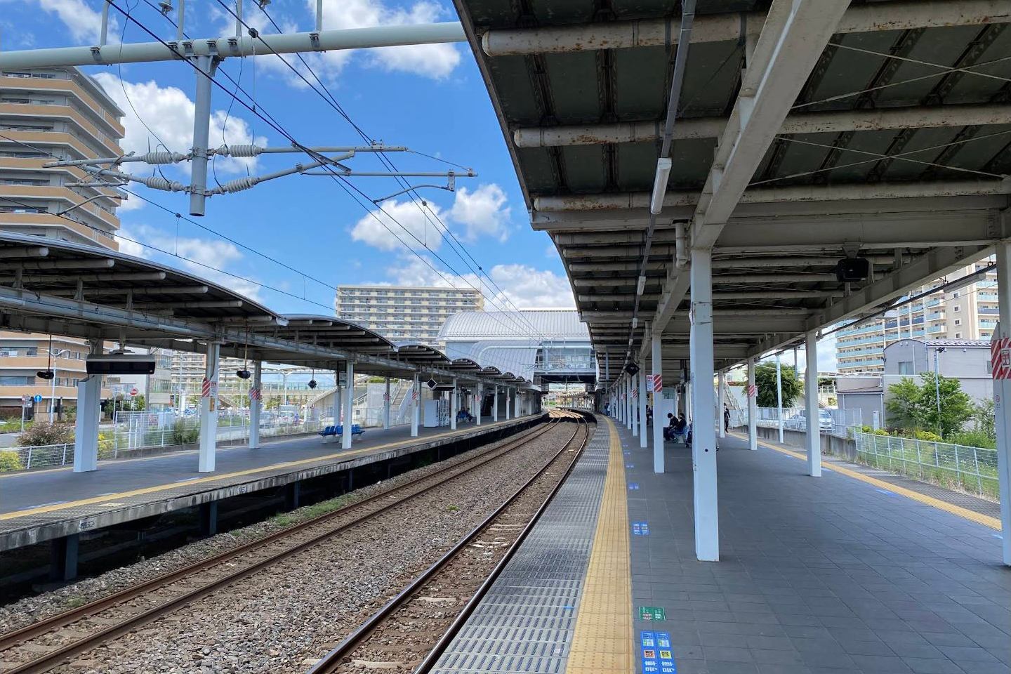 - 1・4番線は待避線(朝の下り・日中の上りを除く時間帯で特急の通過待ち)、2・3番線は本線(特急・特別快速が使用)となっている。