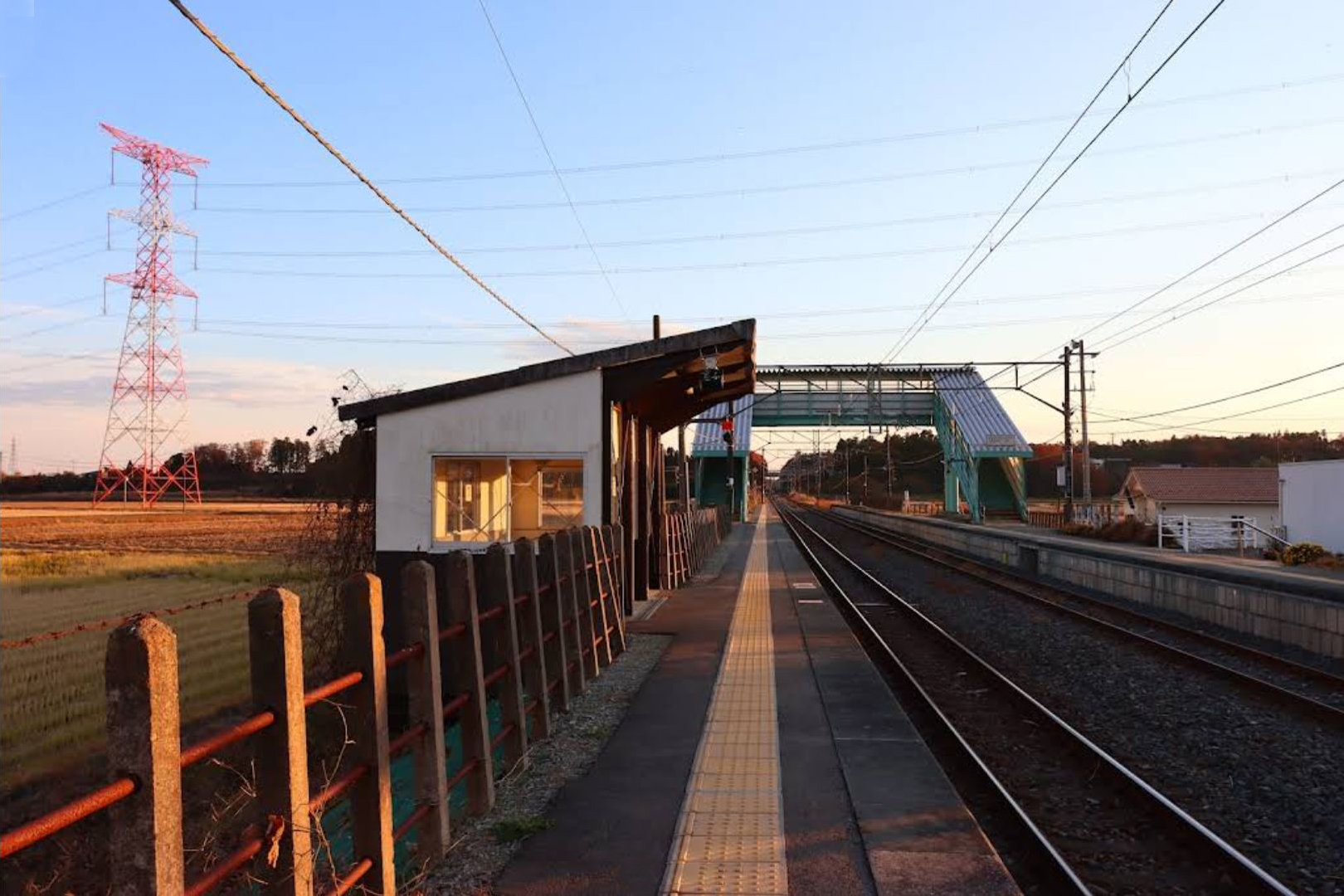 駅構造 相対式ホーム2面2線をもつ地上駅であり、ホーム間は跨線橋で連絡している。