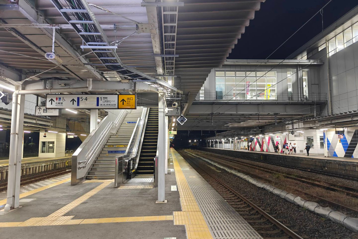 • 4・5番線は水戸線列車および水戸方面に直通する列車が乗り入れ、2017年の工事竣工までは常磐線の10両編成が入線できなかったが、輸送障害時に常磐線列車の折り返し運転機能向上を目的にホーム延長工事が実施され、10両編成の発着に対応した。