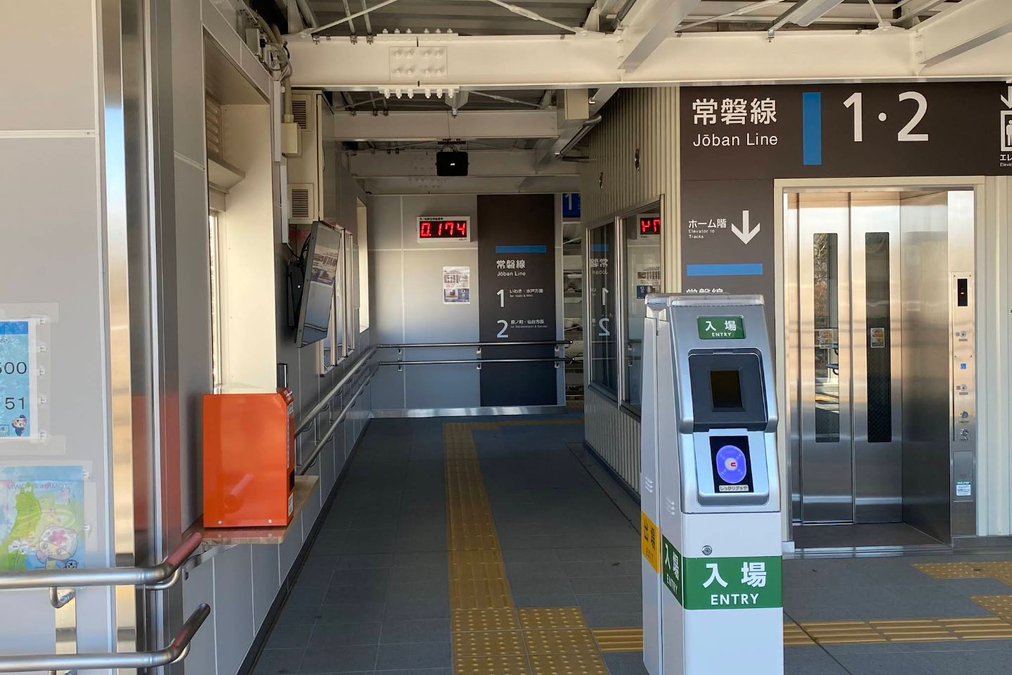 駅構造 島式ホーム1面2線を有する地上駅である。簡易Suica改札機が設置されている。
