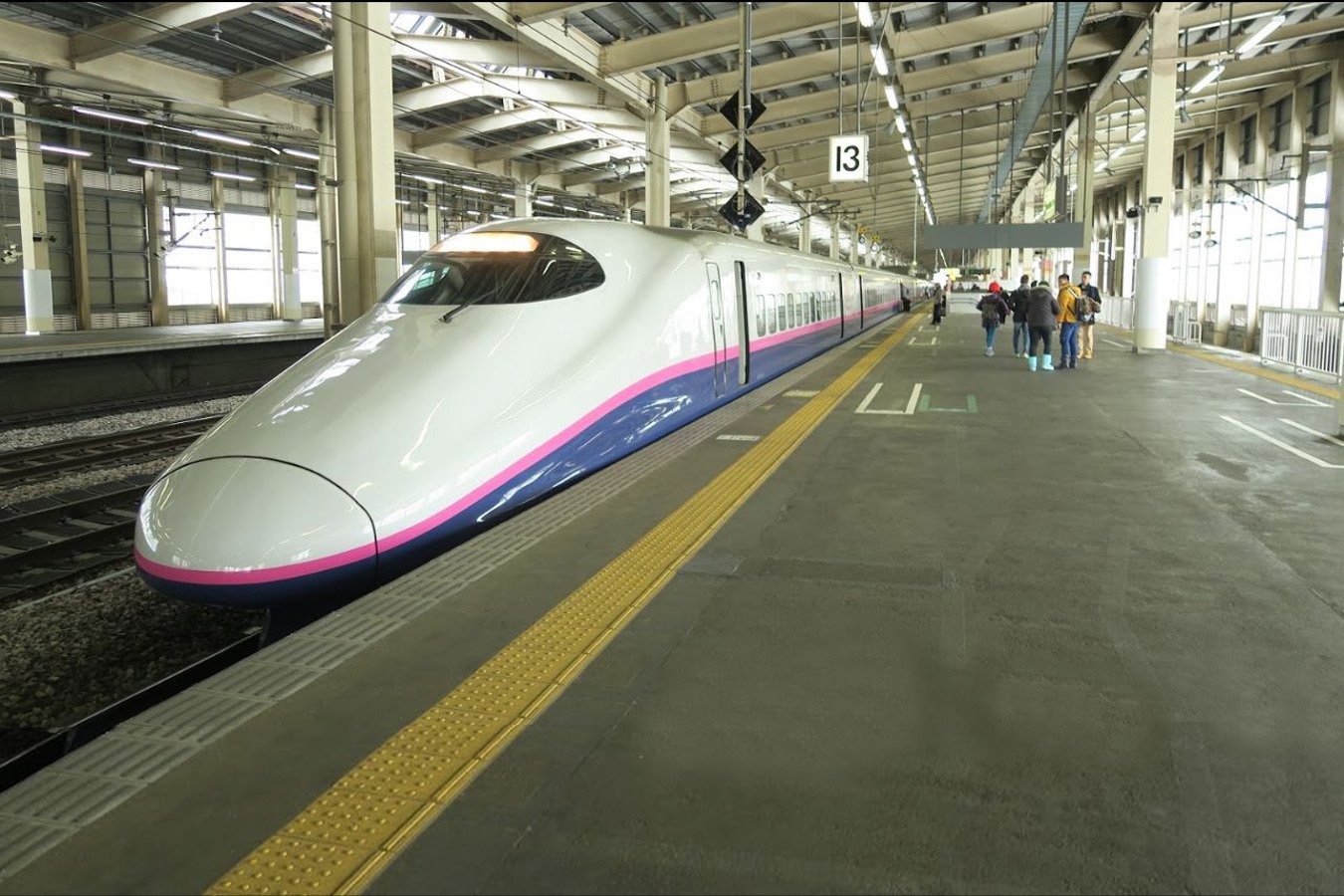 E2系新幹線が13番線に停車 新幹線ホームにE4系が到着します