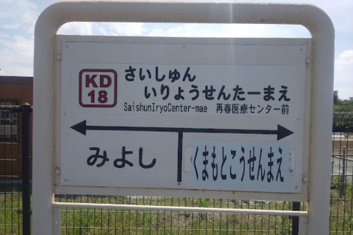 - 2019年(令和元年)10月1日:熊本再春荘病院の熊本再春医療センターへの名称変更に伴い、再春医療センター前駅に改称とともに駅ナンバリング導入。