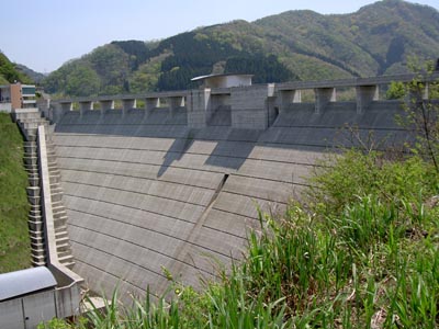 クレストには12門の自由越流式洪水吐が堤体全面にあります。