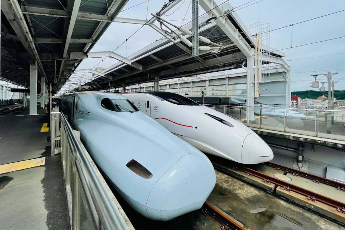 • ホームは、在来線がほぼ南北方向に敷設された島式ホーム3面6線を有する地上駅、新幹線はその直上に直角の線形で敷設された島式ホーム2面4線を有する高架駅(3階)である。後者は海に向かって行き止まりとなっている。