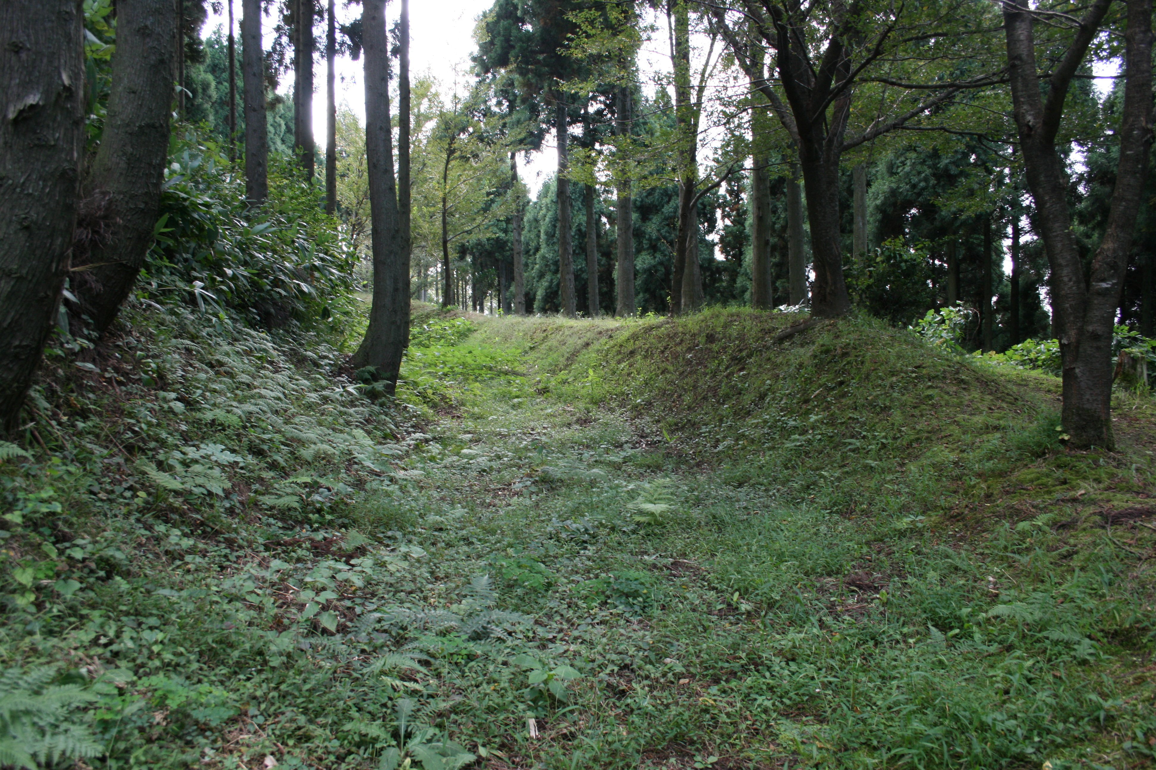 切山城跡は、越中側に大きな堀を設けていることから、佐々方に備えた前田方の城とされ、逆に松根城跡は加賀側に大きな堀が認められることから、佐々方の城と考えられます。