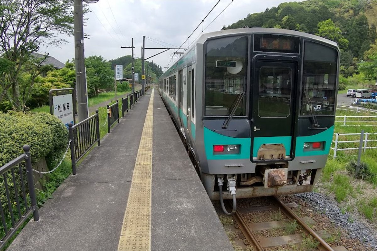 西国三十三所第29番札所の松尾寺にちなんだ駅名であるが、寺は山の中腹にあって徒歩で約50分ほどかかる。