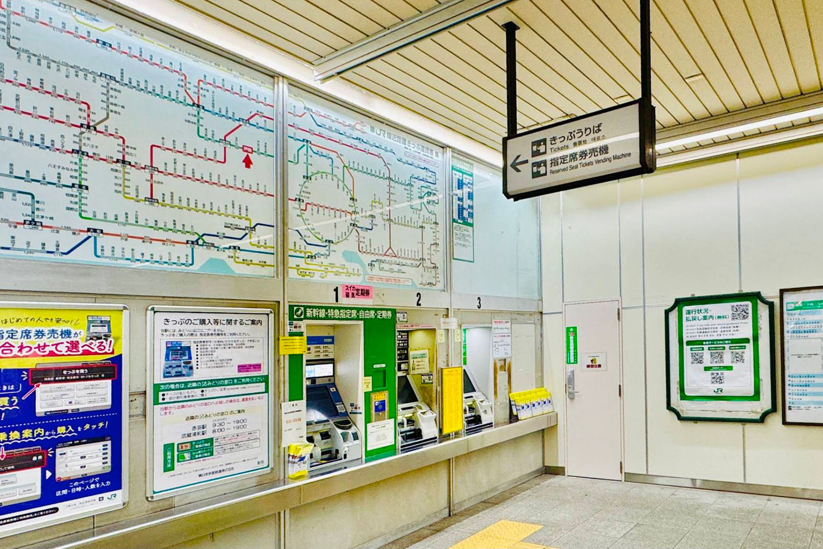 自動券売機、指定席券売機は改札手前左手に設置されている。なお、お客さまサポートコールシステムが導入されており、早朝および一部の日中時間帯は遠隔対応のため改札係員は不在となる。