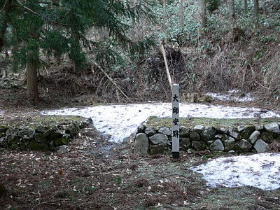 | 仏蔵坊跡と大宮坊の間にある石垣 |