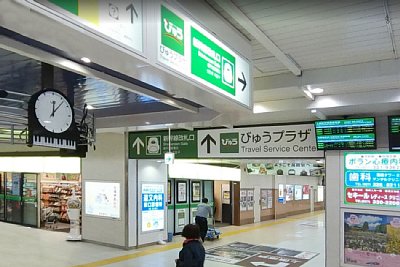 みどりの窓口(改札外3窓、在来線改札内1窓)・びゅうプラザ(みどりの窓口とは別のエリア(びゅうトラベルサービスに業務委託))・自動券売機・指定席券売機が設置されています。2006年度に自動体外式除細動器