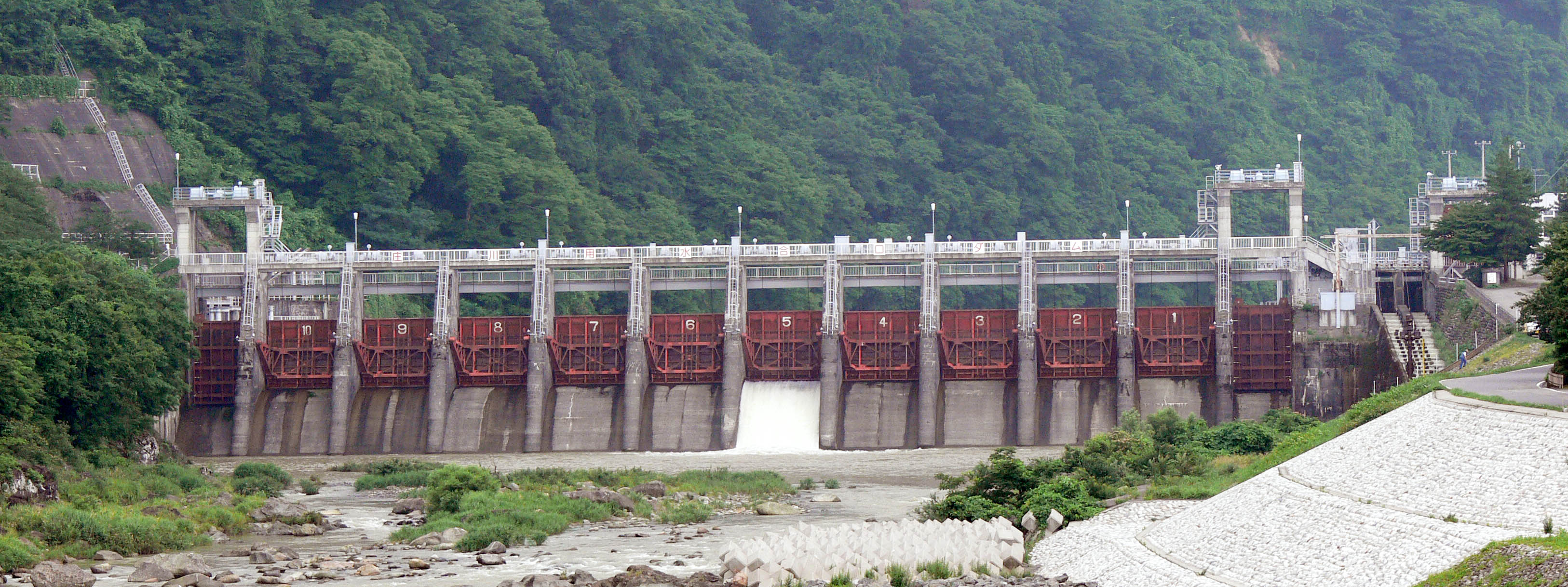 庄川合口ダムは庄川流域の発電ダム群では最も下流に位置しています。