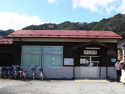 難読駅名の一つ。駅名は開業当時存在した上枝村に由来する。