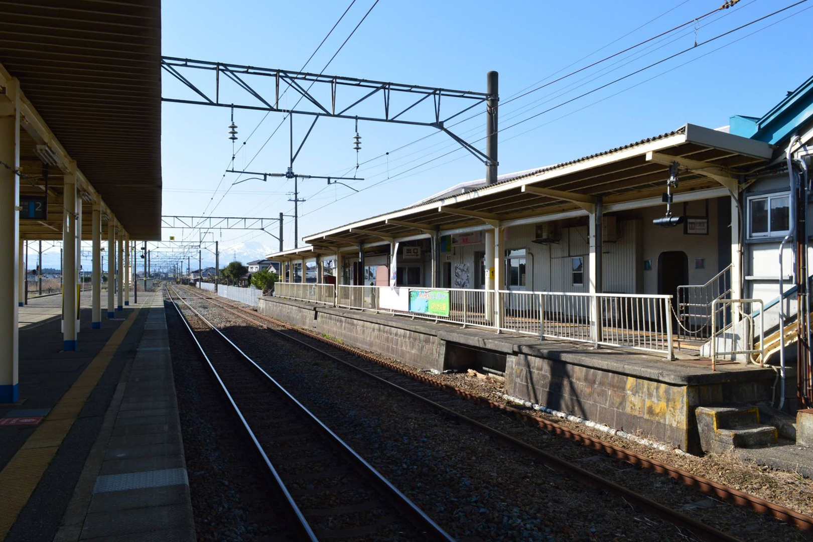 駅舎直結のホーム(1番線)も存在していたが、現在は柵で囲まれていて旅客用としては使われていない(線路は下り列車用の側線として現在も稼働中)。