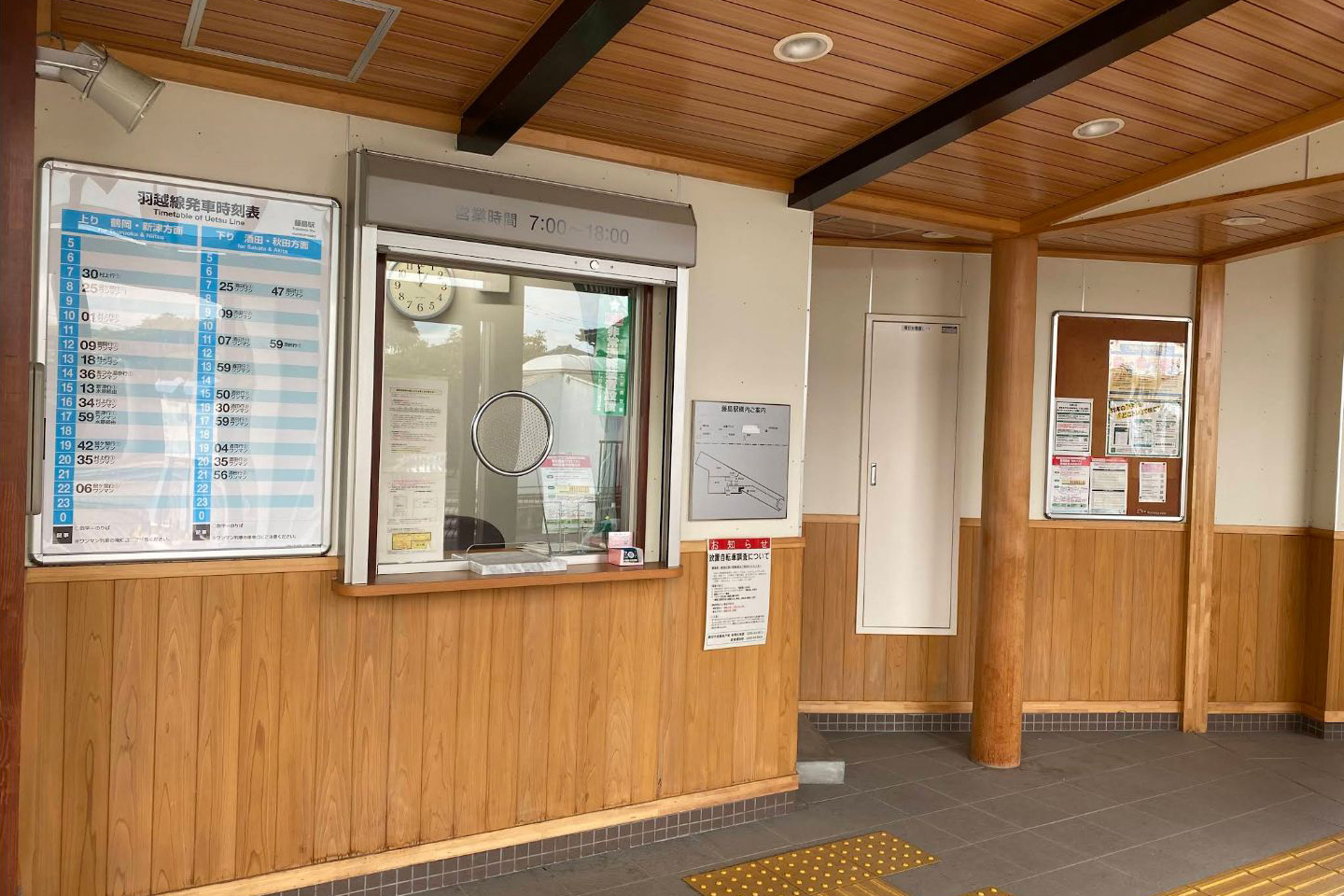 酒田駅管理の簡易委託駅で、窓口が設置されている。