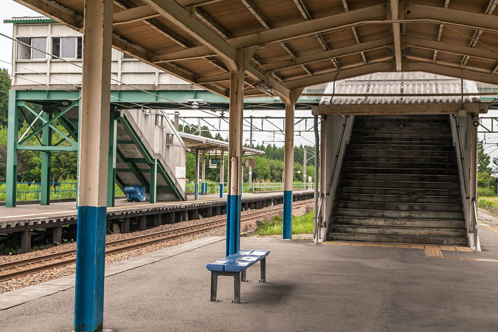 単式ホーム2面2線を有する地上駅である。駅舎(東側)と両ホームは跨線橋で連絡している。