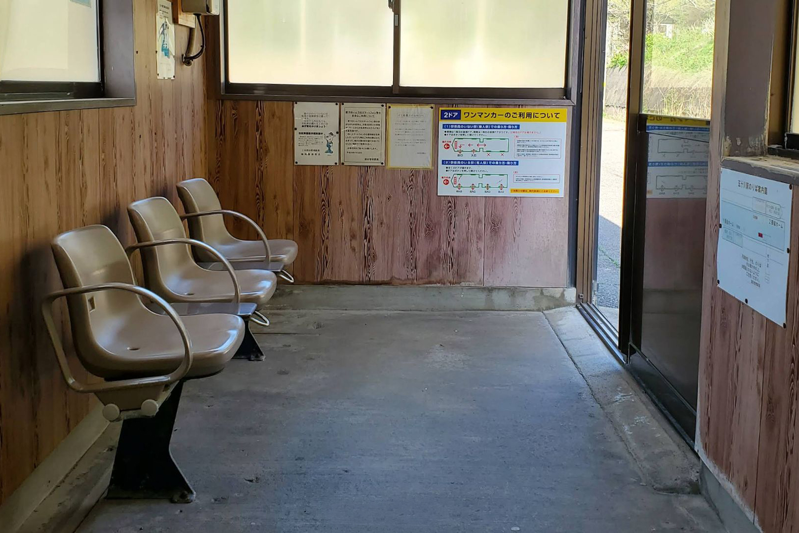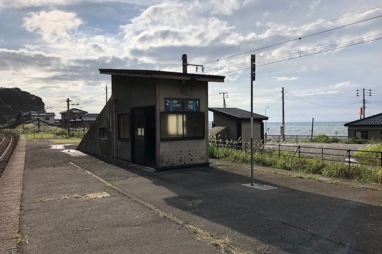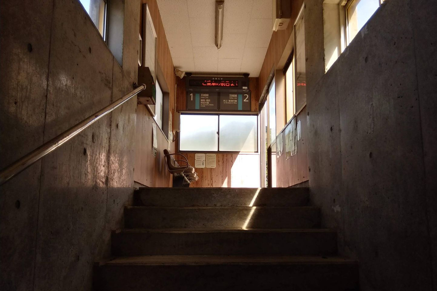 ホーム行地下通路入口鶴岡側には、旧ホームの一部が残っている。ホーム上には待合室が設置されている。