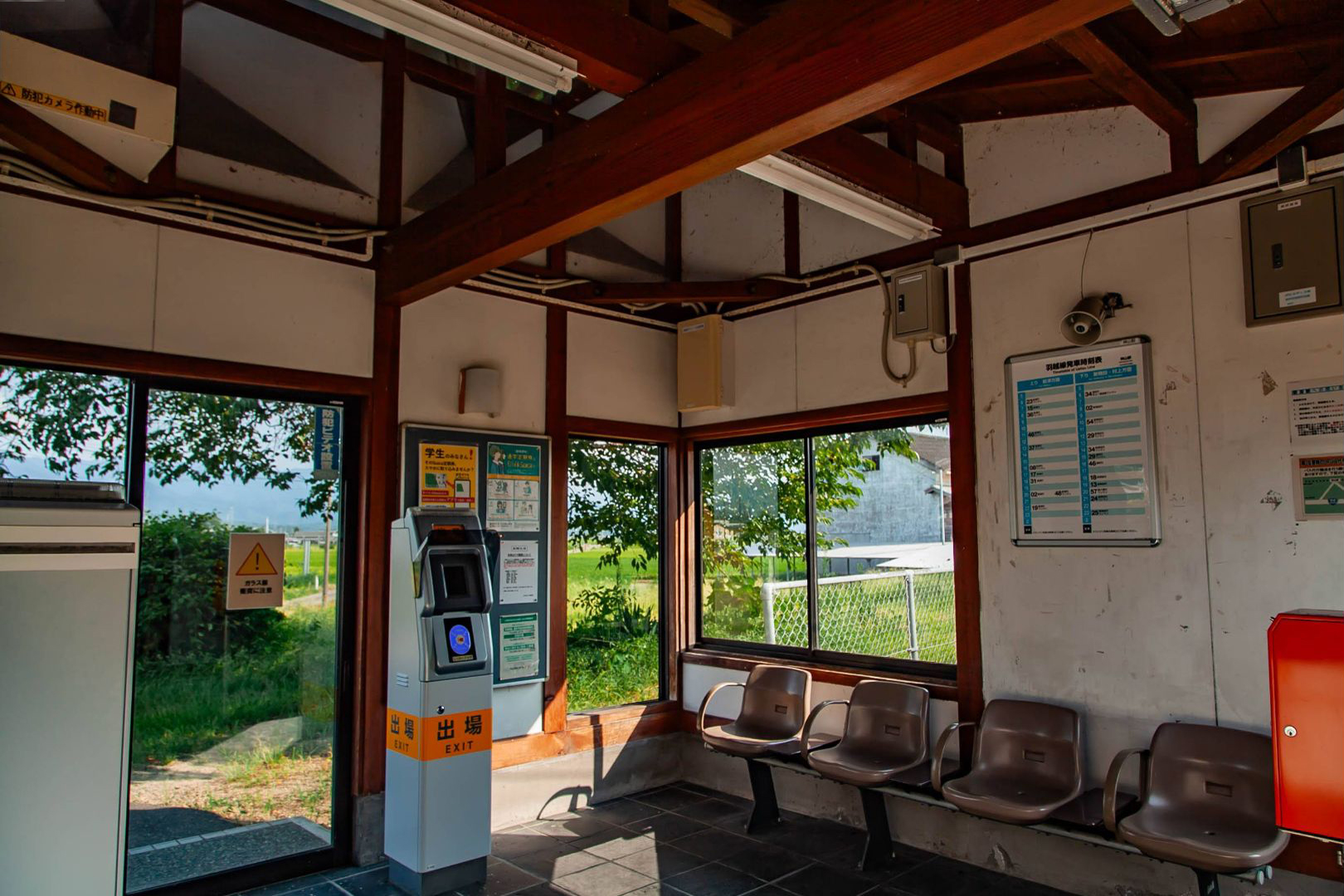 駅舎は待合スペースの機能のみで、簡易Suica改札機、乗車駅証明書発行機、トイレ(水洗式)などが設置されている。