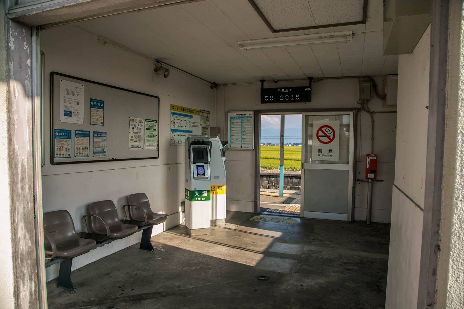 新津駅管理の無人駅となっている。駅舎は待合室の機能のみで、簡易Suica改札機のほか、乗車駅証明書発行機、トイレ(簡易水洗式)などが設置されている。また、2番線に面して南口が設けられており、ホーム入口には簡易Suica改札機(入場用・出場用各1台)が設置されている。