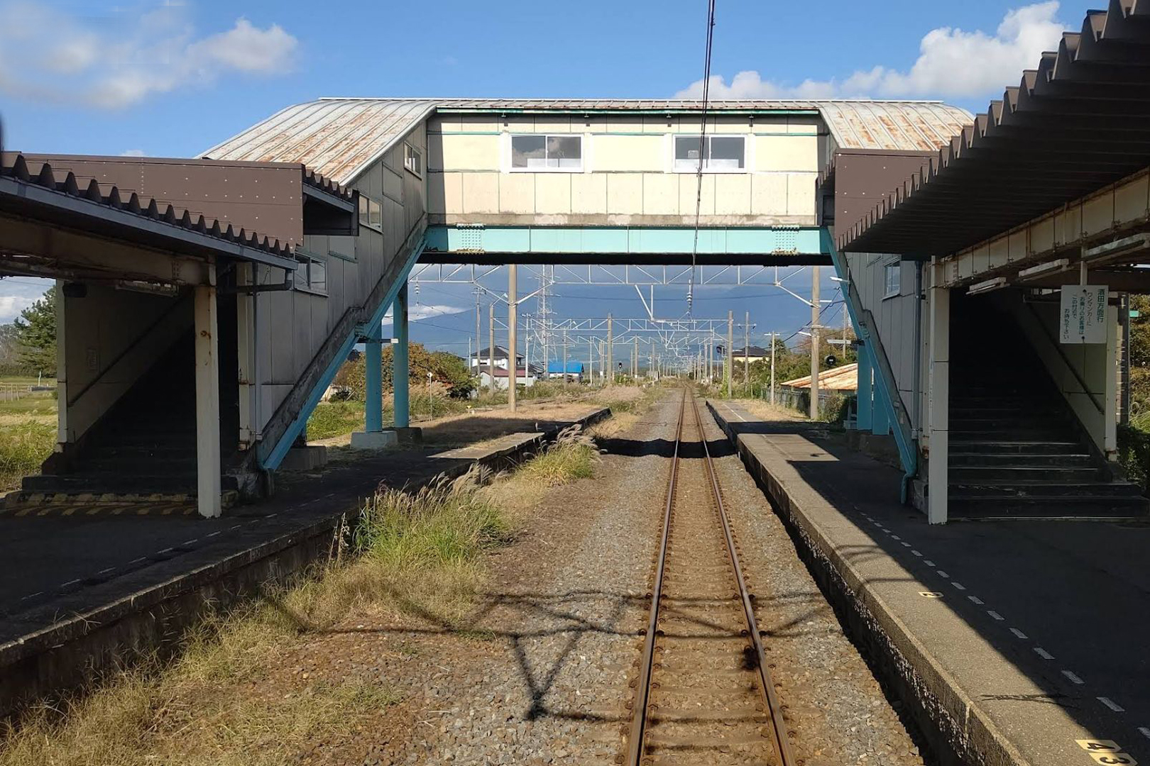 駅構造 単式ホーム2面2線を有する地上駅で、互いのホームは跨線橋で連絡している。