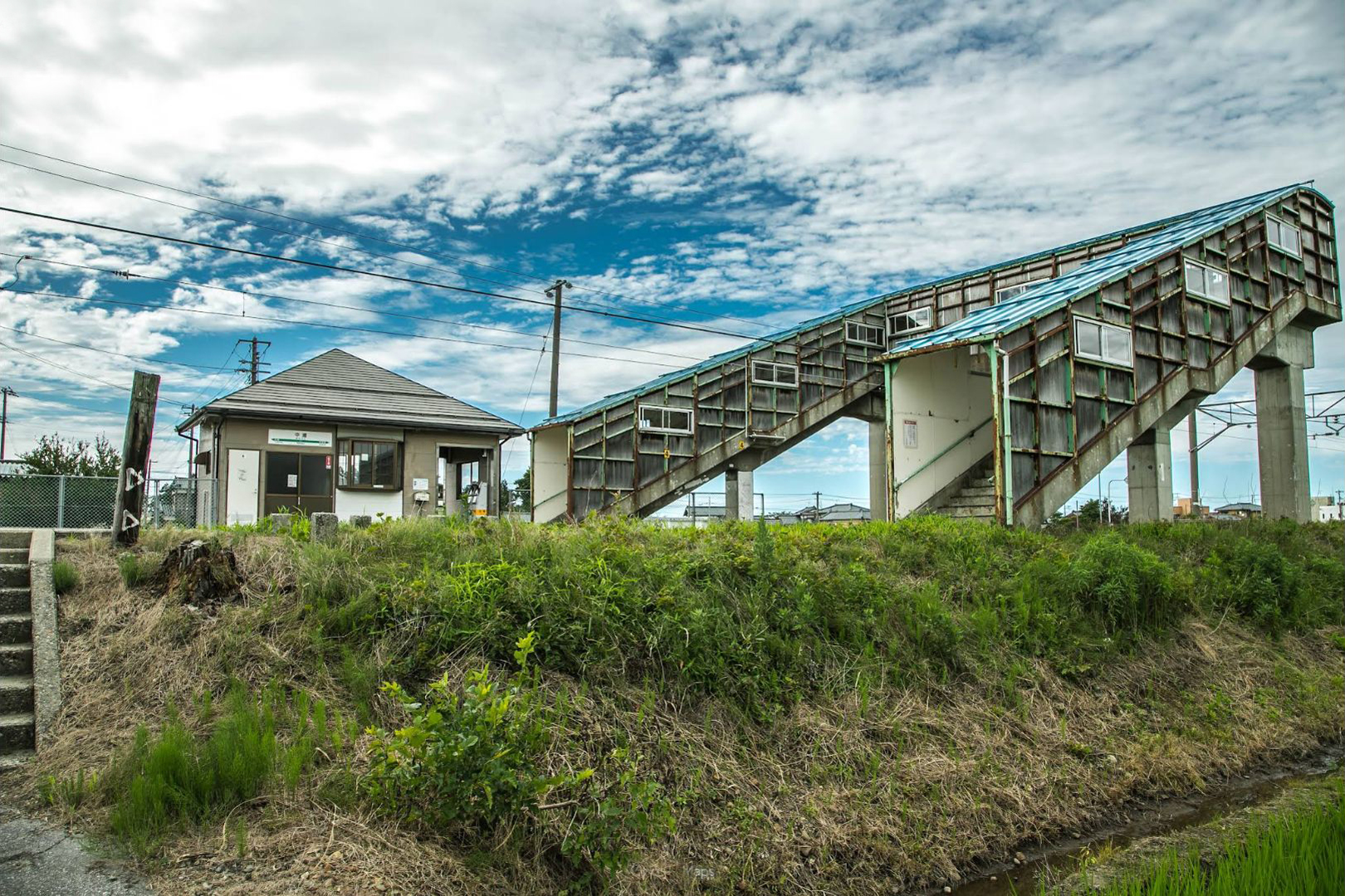 しかし、ホーム上には跨線橋が残されており、旧2番線側に東口を設け、連絡通路として利用されている。