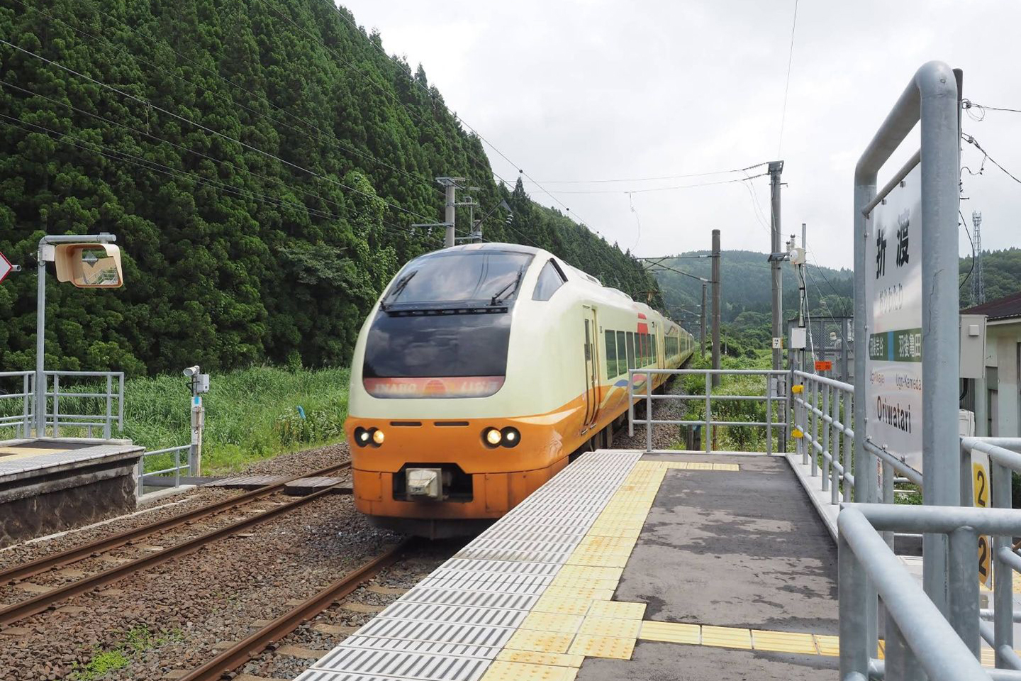 2021年(令和3年)3月13日ダイヤ改正時点で、下り秋田方面が6時、7時、10時、13時、19時の5本上り酒田方面が朝7時、12時、17時の3本のみが停車する。