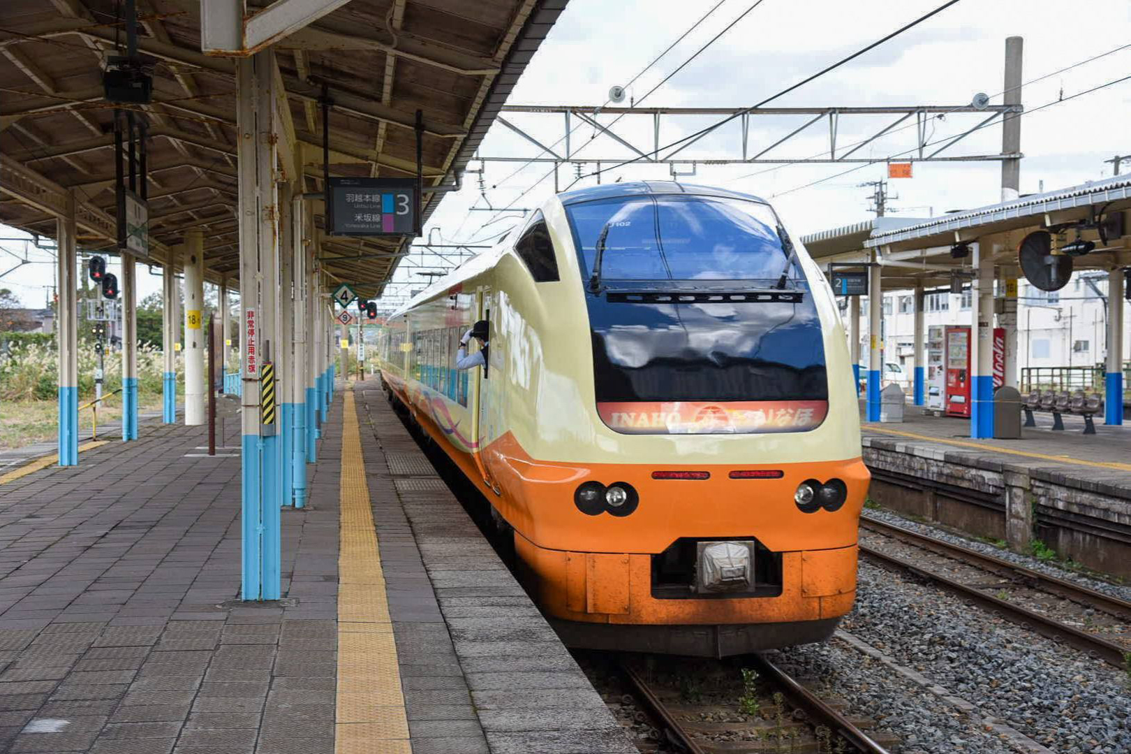 羽越本線の特急「いなほ」(新潟駅 - 酒田駅・秋田駅)の全列車、快速「べにばな」、臨時快速列車(観光列車)「海里」(新潟駅 - 酒田駅)が停車する。