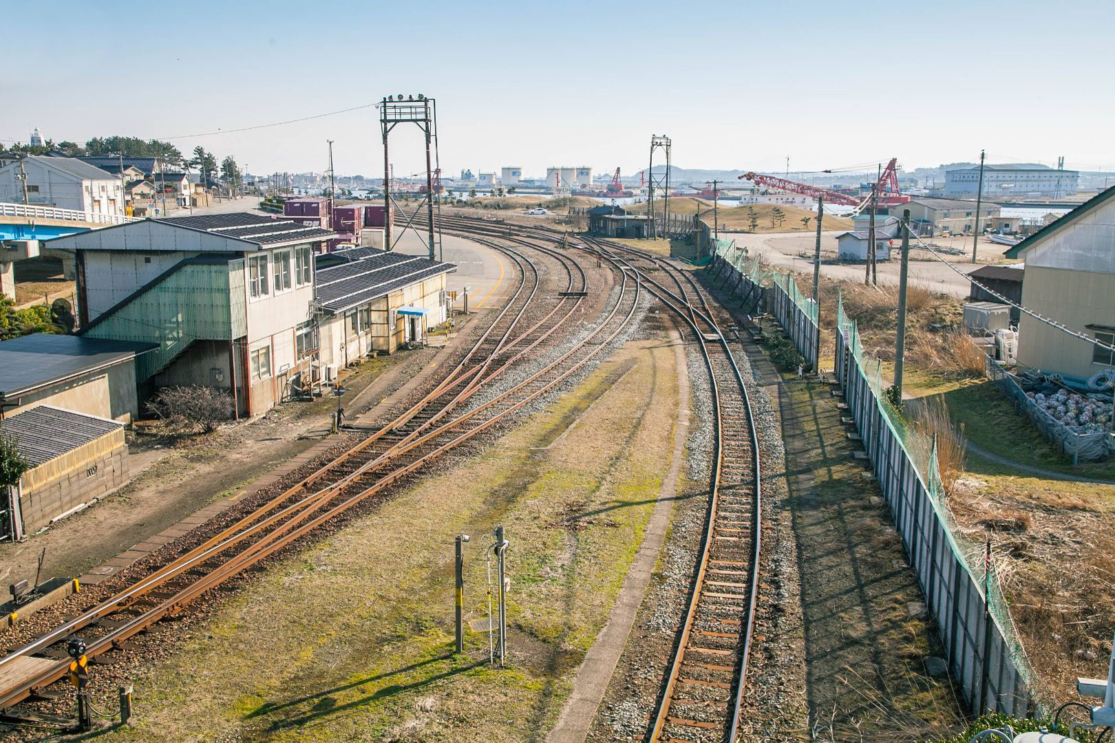 駅構造 地上駅。酒田港に面する広い構内を持つ。