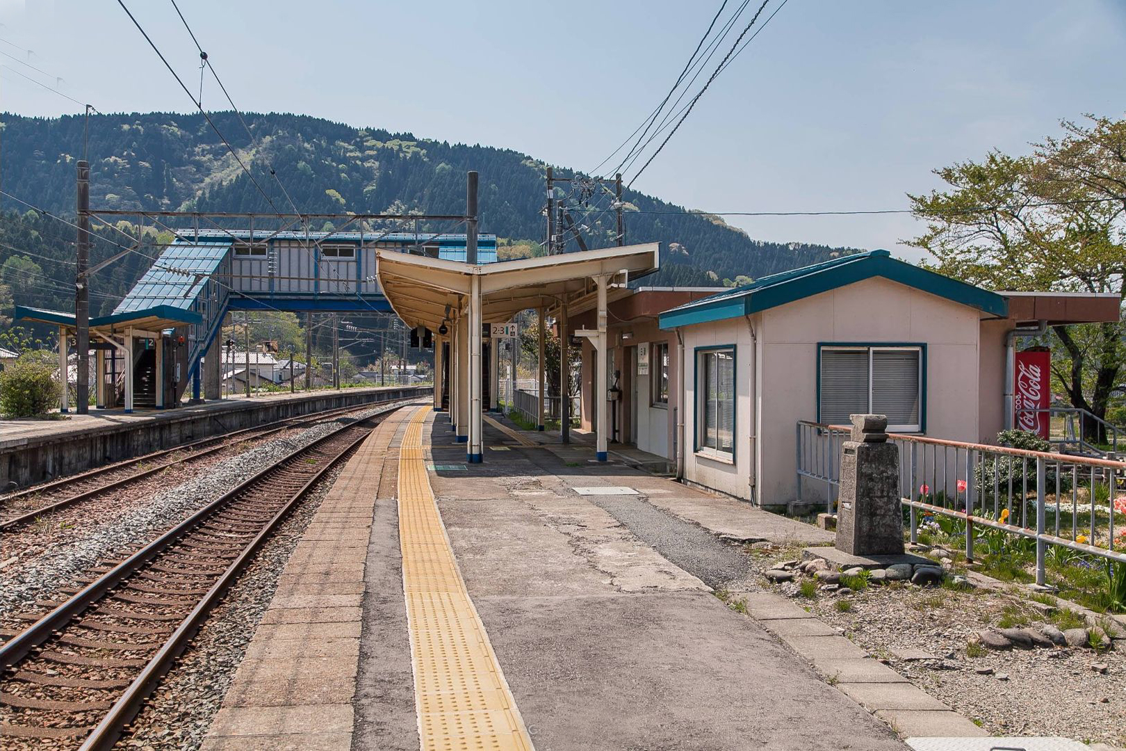 互いのホームは跨線橋で連絡している。