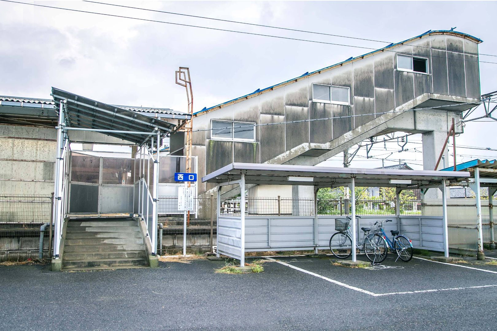 跨線橋は2つに仕切られており、新津寄り半分が東西自由通路となっている。